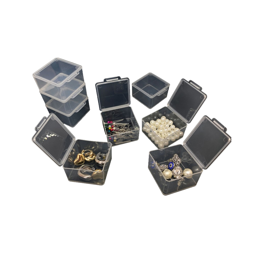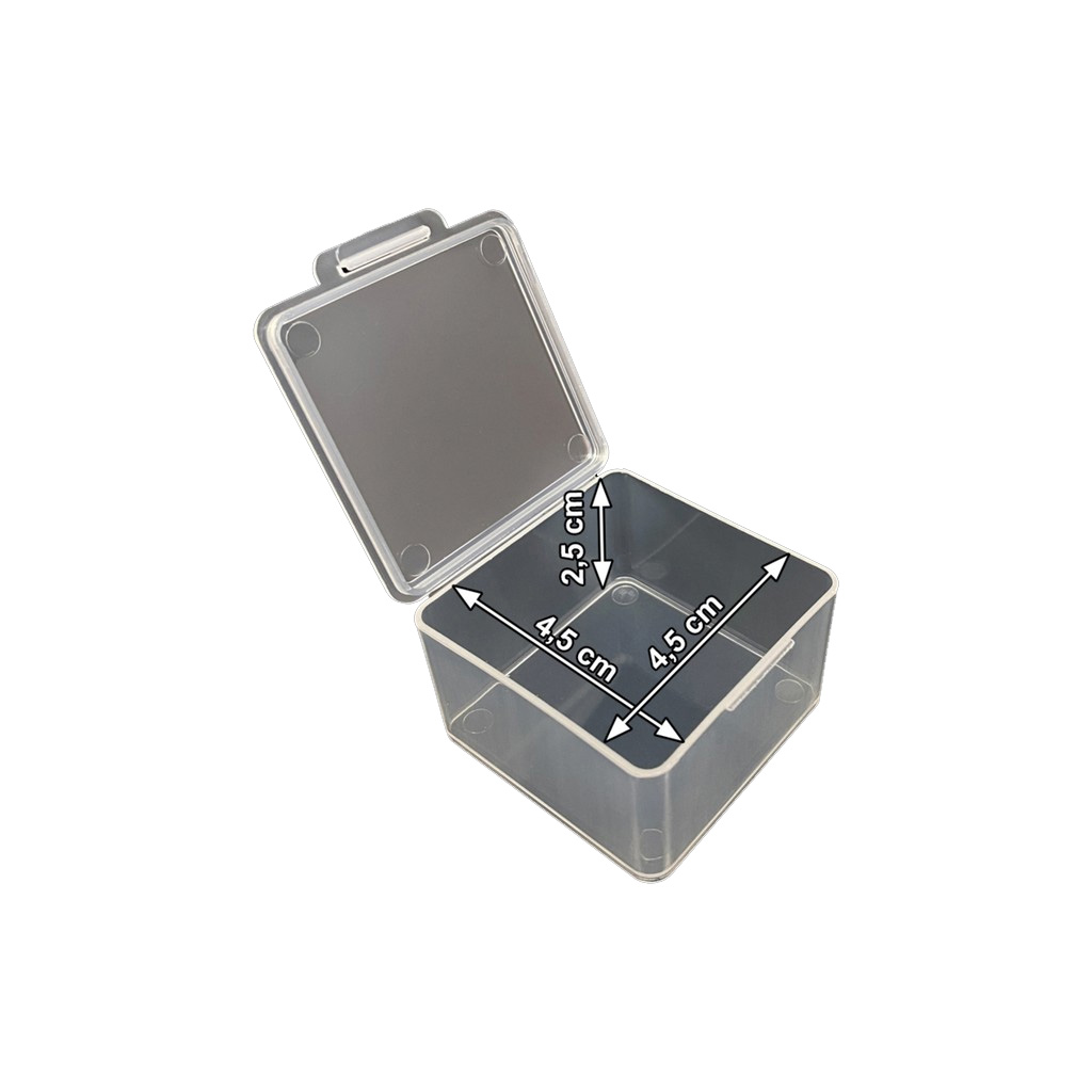 4,5 cm x 4,5 cm x 2,5 cm boyutlarındaki bu plastik şeffaf kutular, küçük eşyalarınızı düzenli bir şekilde saklamanız için idealdir.